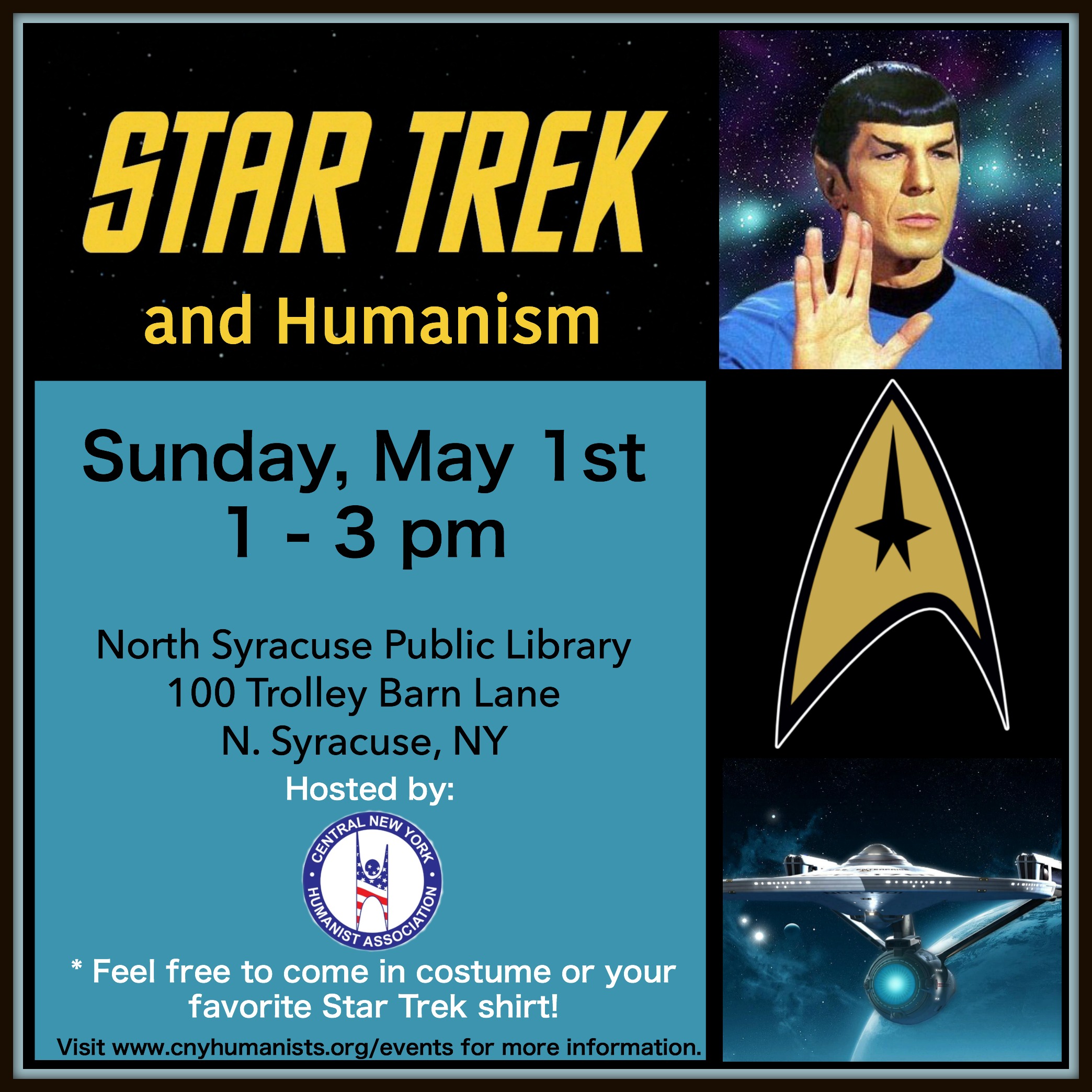 Feel free to come in costume or your favorite Star Trek shirt!