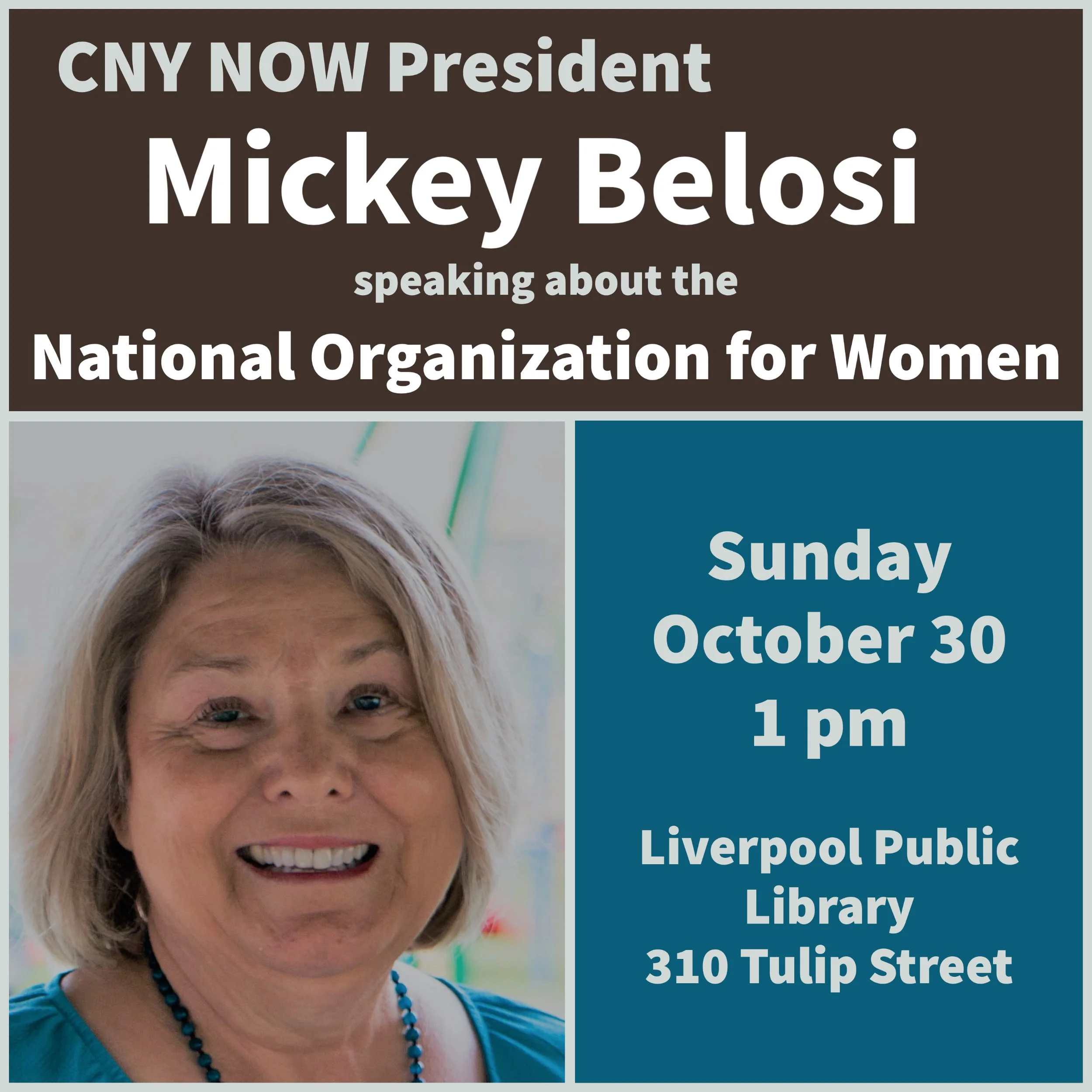 Mickey Belosi is the current president of the Central New York Chapter of the National Organization for Women (NOW). NOW is the nation’s largest organization working to advance women’s rights and improve women’s lives.