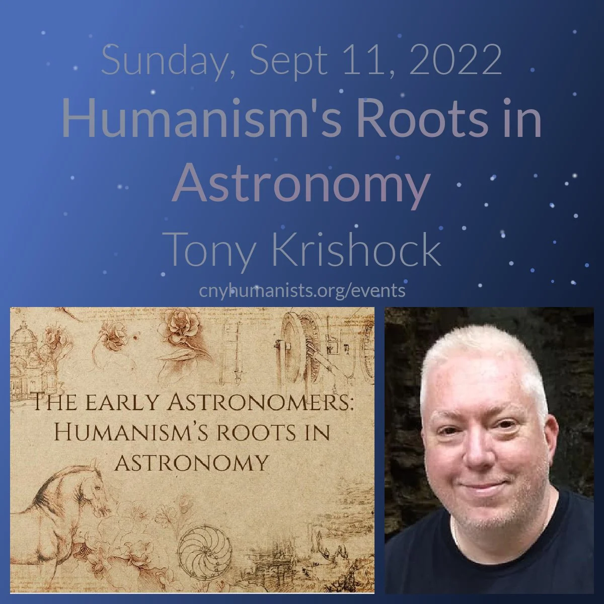 How did our early understanding of the night sky influence Humanism? What role did the earliest astronomers play in the Renaissance? Join our own Anthony Krishock as he explores the courageous and sometimes subversive roles played by the early astronomers and how their efforts formed the foundations of modern Humanism.