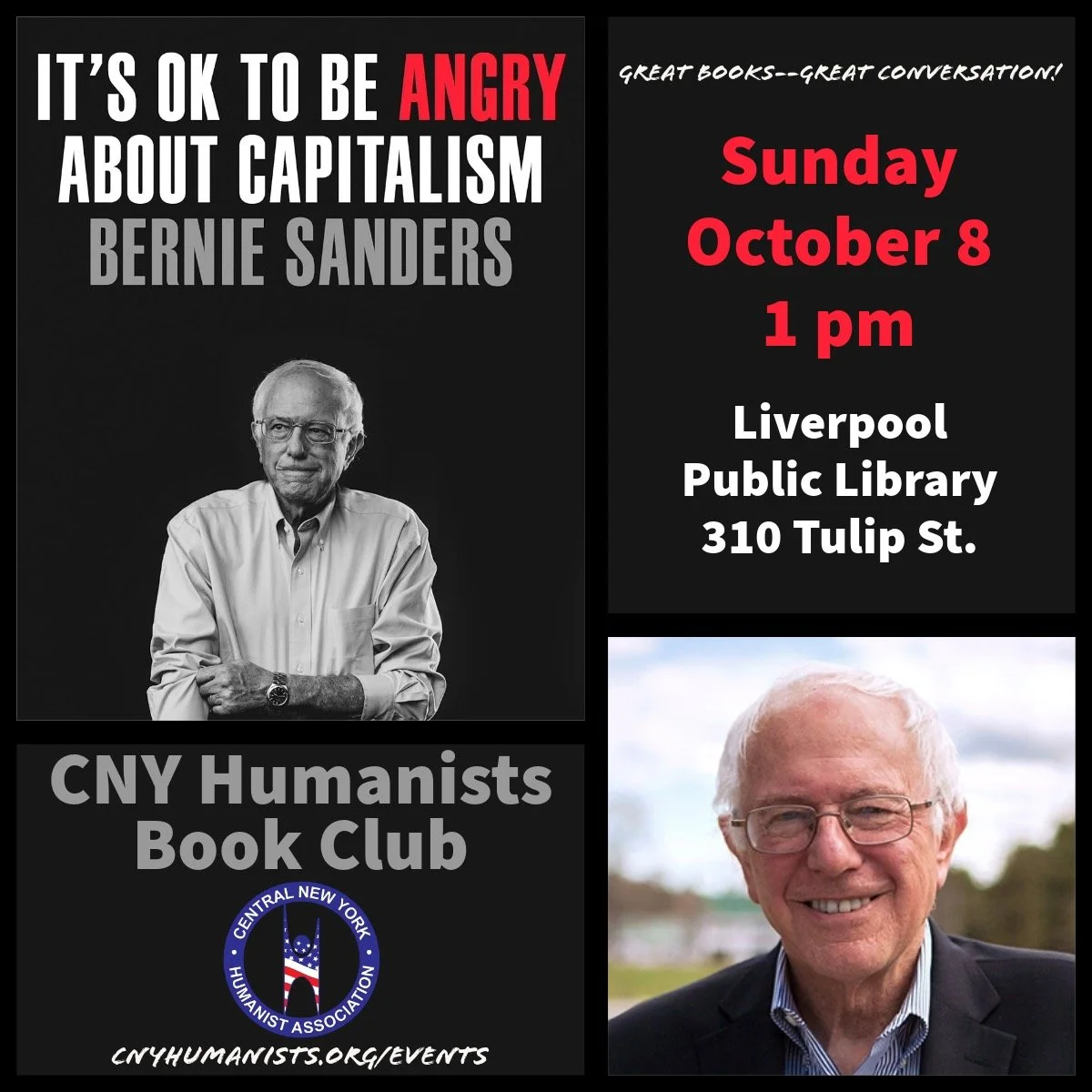Join us Sunday, October 8th to discuss It’s OK to Be Angry About Capitalism by Bernie Sanders. It should be an interesting read, and a lively discussion!