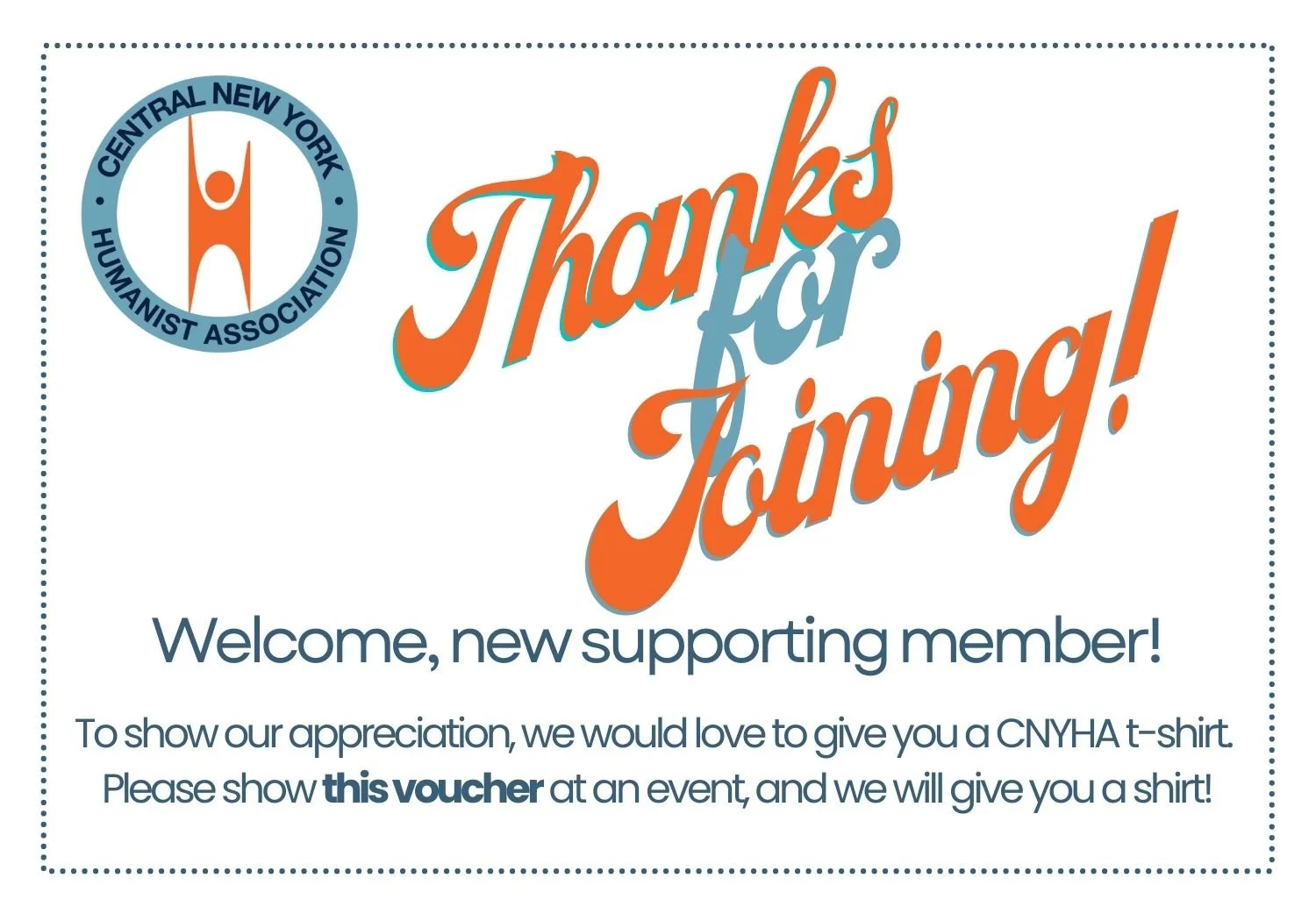 Thank you for becoming a supporting member of the Central New York Humanists! We look forward to seeing you at a future event.