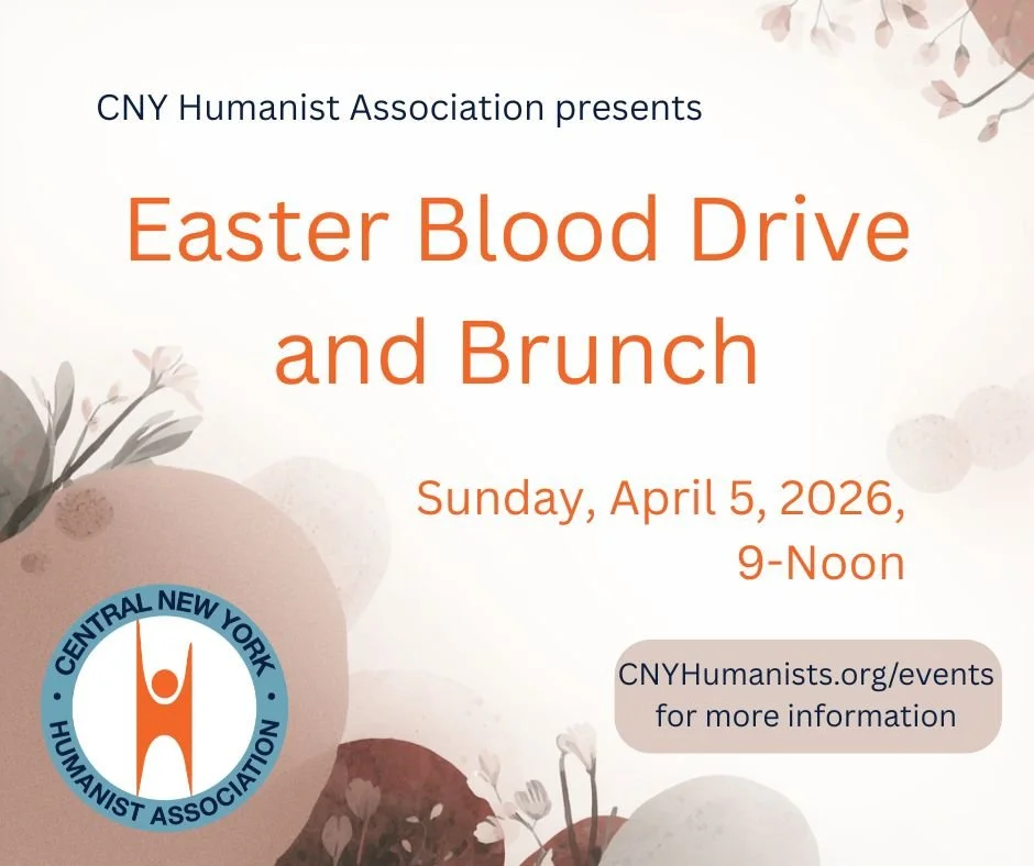 After we give blood, we’ll head over to the Wolf’s Den (617 Wolf St, Syracuse, NY 13208) for brunch at 11 am. We need to make a reservation for brunch, so please RSVP to us at CNYHumanists@gmail.com.